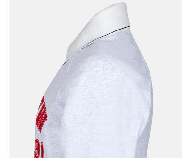 레터링프린트가 경쾌한 느낌을 주는 티셔츠입니다.카라는 탈부착 가능해서 다양한 분위기를 낼 수 있어요