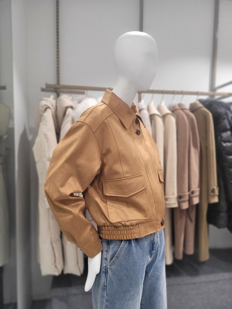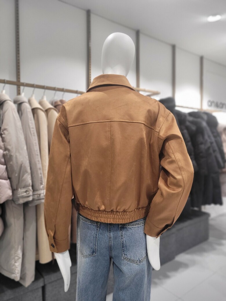 [온앤온] 카라넥 크롭 에코 레더 점퍼 숏가죽자켓 NJM5SMQ01