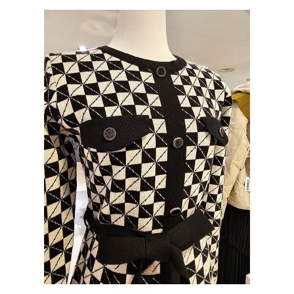 SJOCX29280_허리벨트큐브패턴 레이온원피스
