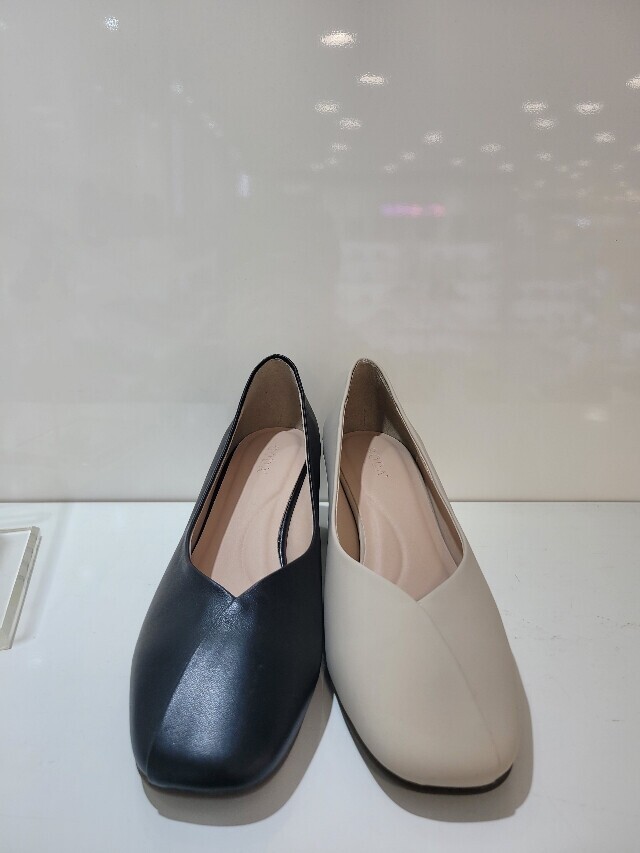 기본 스퀘어 라인으로 나온 펌프스입니다. 5센치 라인으로 바닥이 고무창으로 돼 있어 착화가 매우 뛰어나게 나왔습니다.