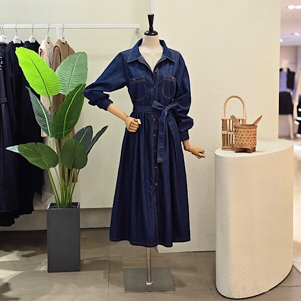FS5A3OP30391_투 포켓 셔츠형 벨트 롱 원피스