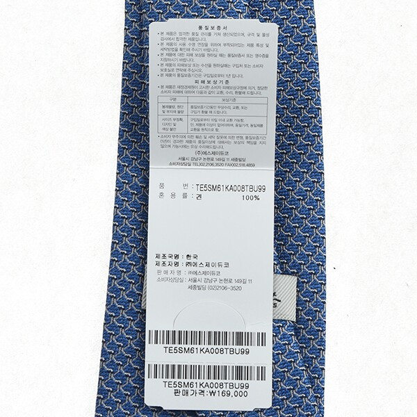 6. 취급시 주의사항 -넥타이 보관시 매듭을 풀고 보관해 주십시요.-구김이 가지 않도록 길게 걸어두시는것이 좋습니다.-니트 타이의 경우, 장기간 걸어두시면 늘어날 수 있습니다. -둥글게 말아서 보관해 주십시요. - 접어서 보관하실 경우, 모양이 망가질 수 있으니 피해 주십시요.-물세탁시 제품의 광택 및 색상이 감소될 우려가 있습니다. -세탁시 사용시 모양이 망가질 수 있습니다.