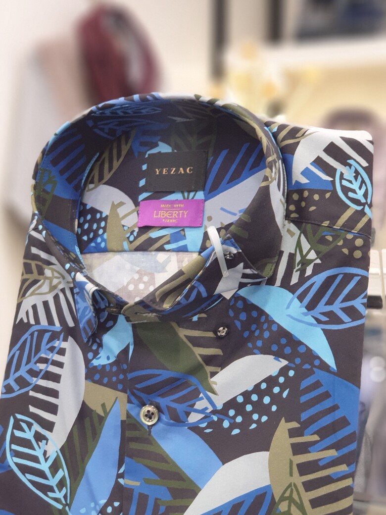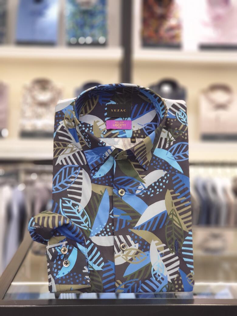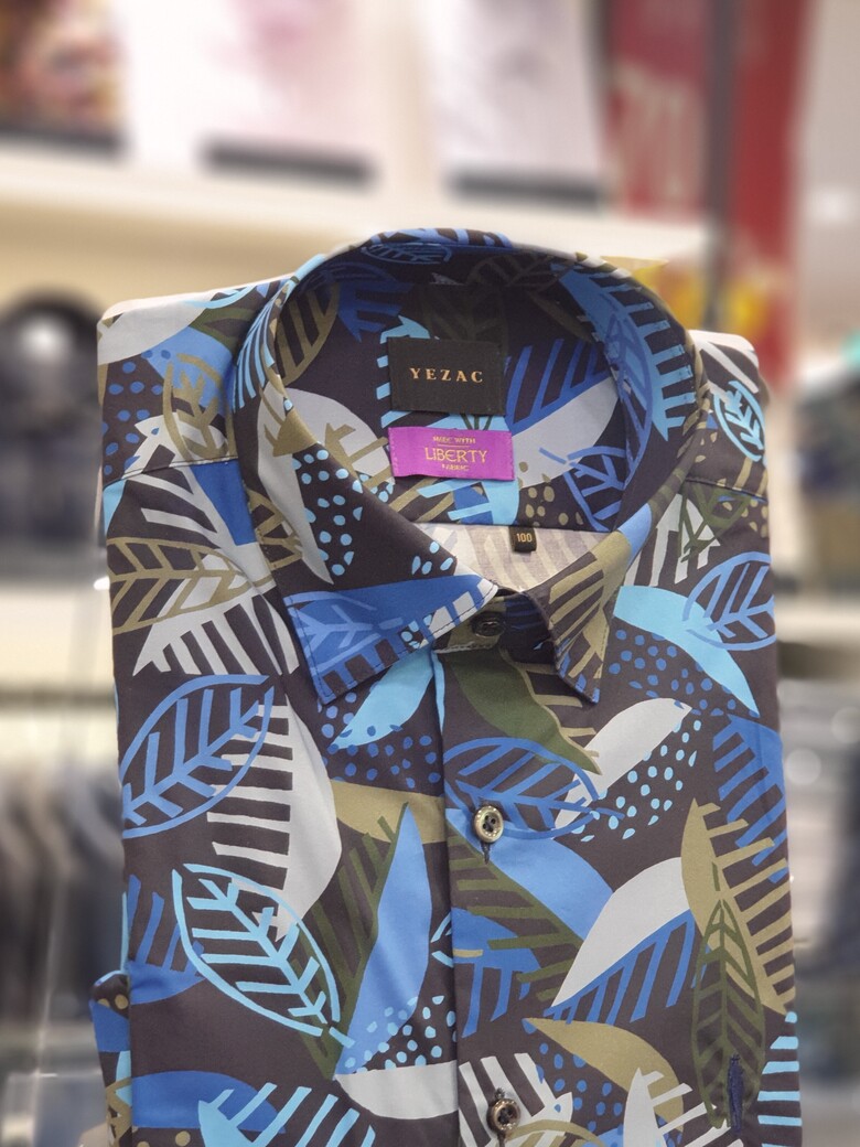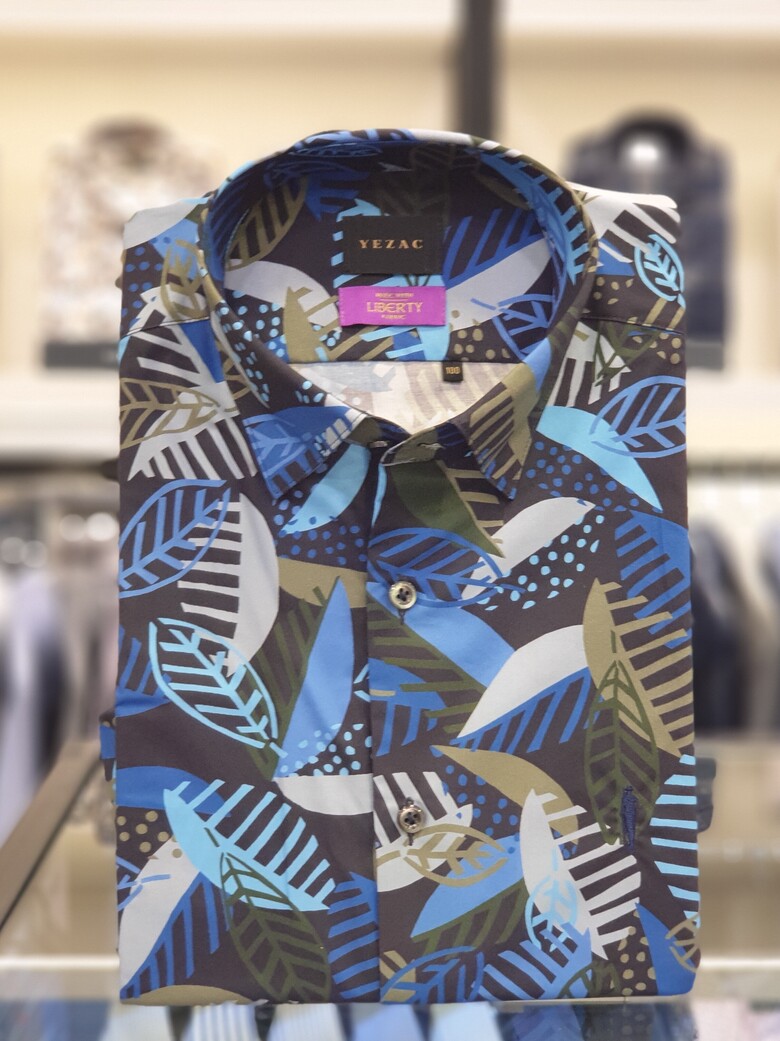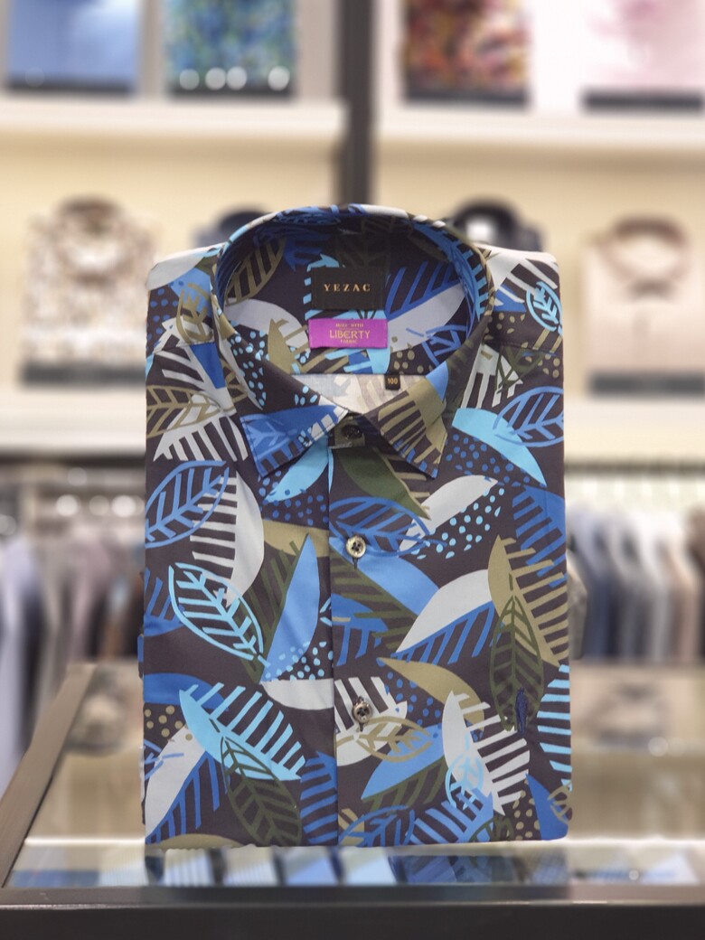 [예작셔츠] 면100 리버티 나뭇잎 올오버 프린트 슬림핏셔츠 YJ1SBG572NY