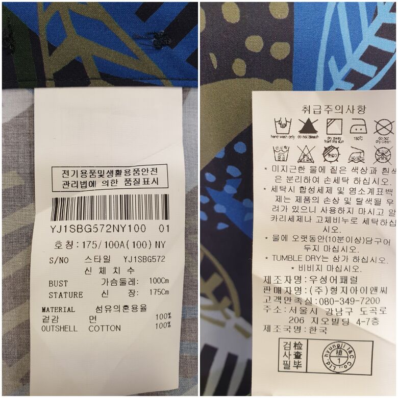| 6. 세탁방법 및 취급시 주의사항 | 상품상세참조 |