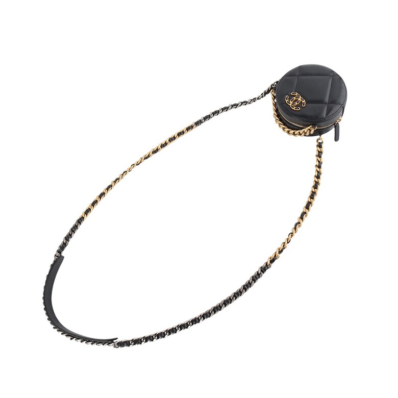 - 볼륨감 있는 동그란 쉐입에 금장 체인 CC 로고가 포인트인