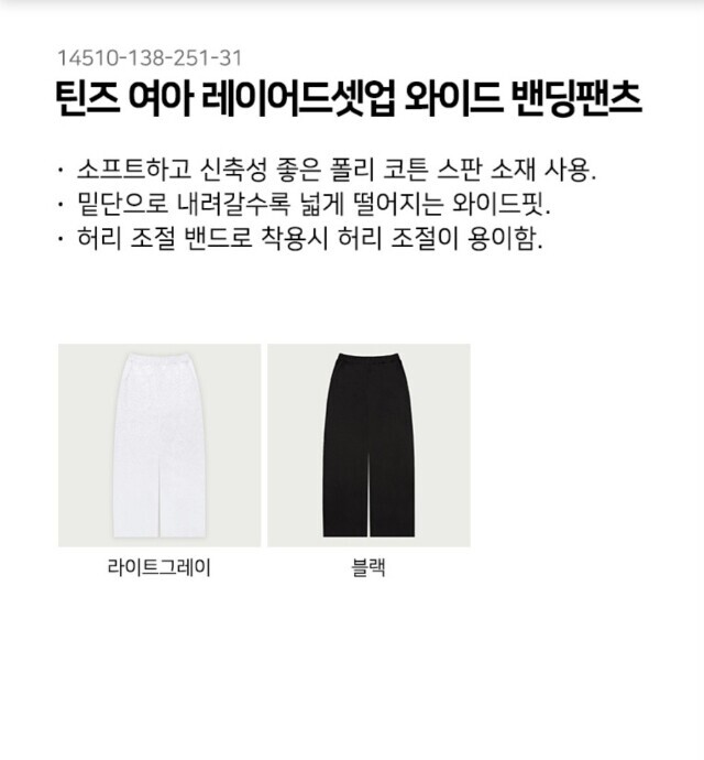 | 1. 제품 소재 (섬유의 조성 또는 혼용률을 백분율로 표시, 기능성인 경우 성적서 또는 허가서) | 상품상세참조 |