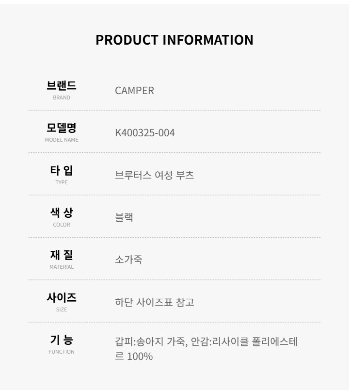 | 4. 제조사 | 캠퍼/MACHO-병행수입 |