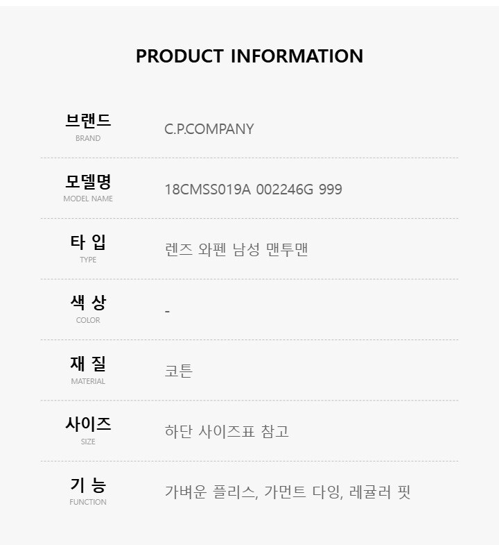 CP컴퍼니 18CMSS019A 002246G 999 렌즈 와펜 남성 맨투맨