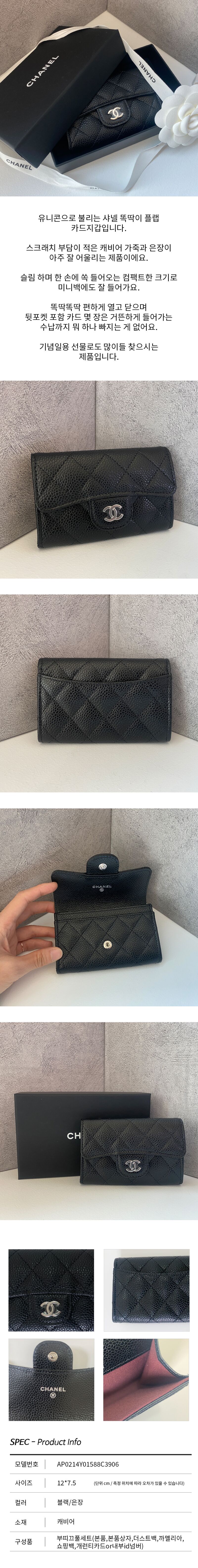 [명품] 샤넬 클래식 캐비어 퀼팅 플랩 홀더 카드지갑 AP0214 블랙/은장