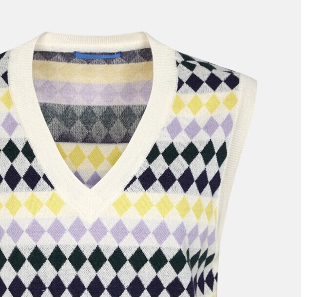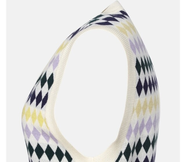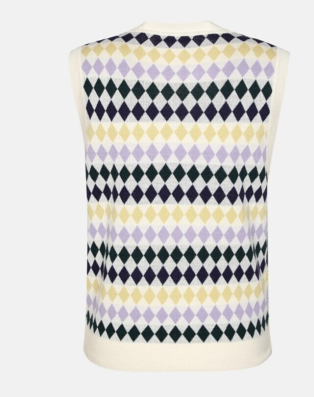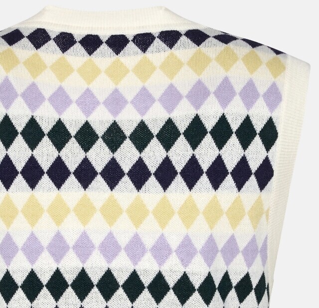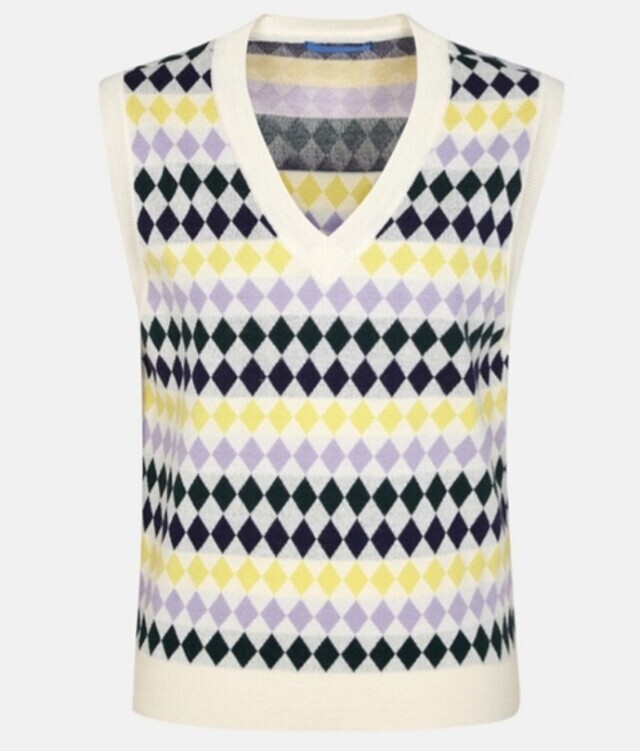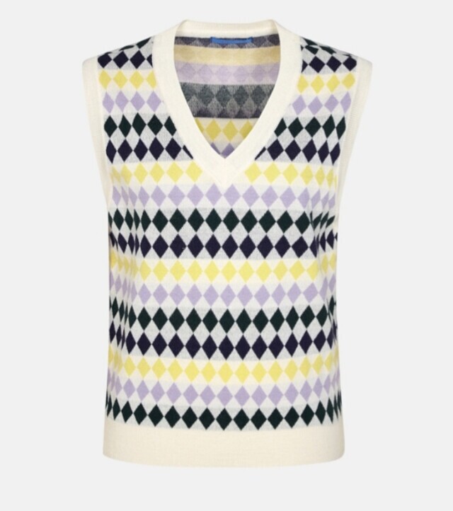 화사한 아가일패턴의 기본 니트조끼입니다. 심플한 코디에 포인트로 입기좋아요