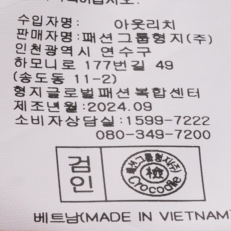 • 아울렛 상품의 특성 상 “택이 훼손”된 경우가 있으나 이는 불량이 아니며 무료 반품 대상 상품이 아닙니다.