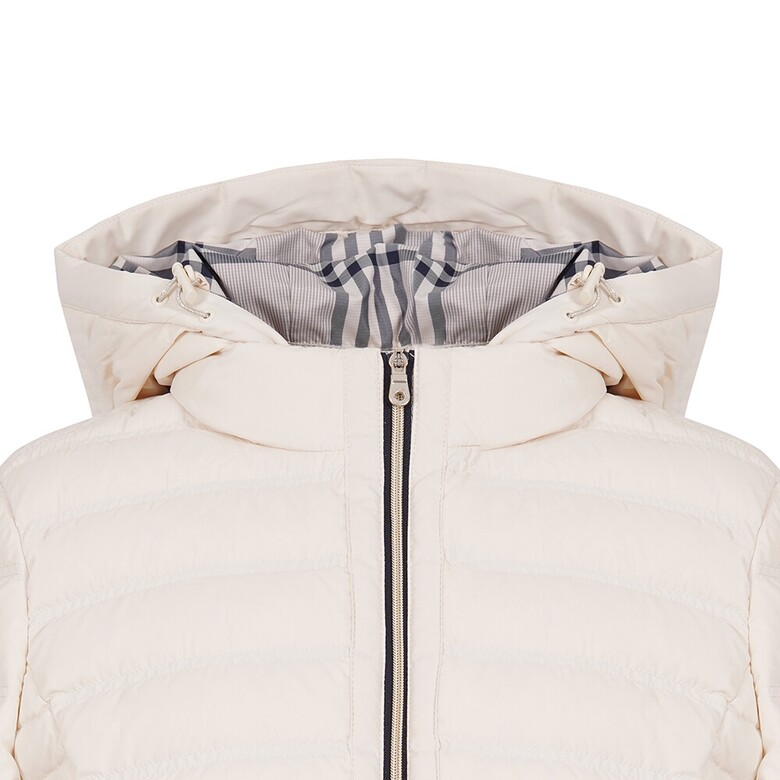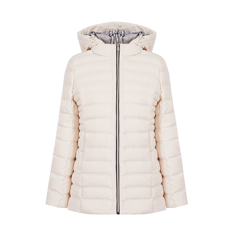 숏기장의 후드 탈부착 덕다운으로|*| 가로 더블 스티치와 후드 체크 안감으로 스포티하게 착용이 가능한 아이템.