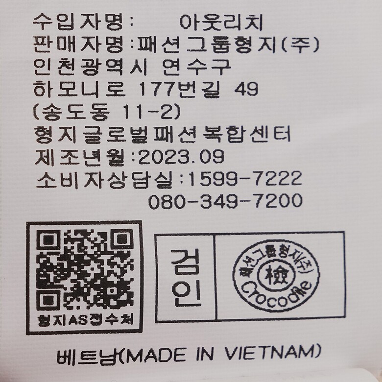 | 6. 세탁방법 및 취급시 주의사항 | 상품상세참조 |