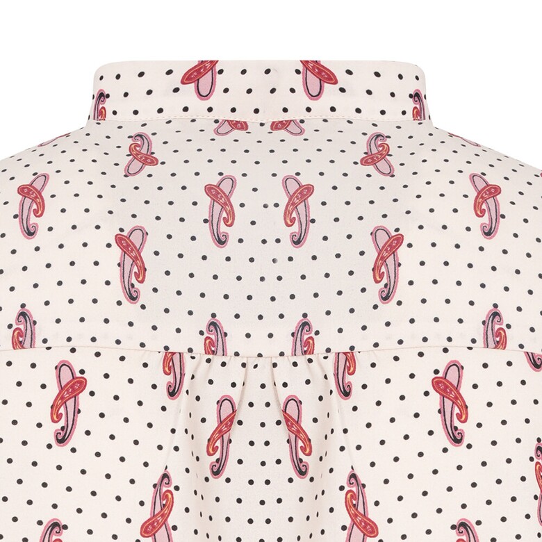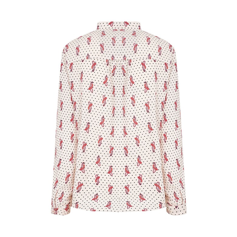 여성스러운 프린트가 포인트인 셔츠형 블라우스 입니다. 정장이나 데님에도 여성스럽게 연출 할수 있는 아이템입니다.