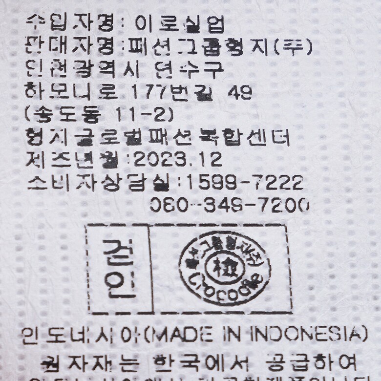 | 1. 제품 소재 (섬유의 조성 또는 혼용률을 백분율로 표시, 기능성인 경우 성적서 또는 허가서) | 상품상세참조 |