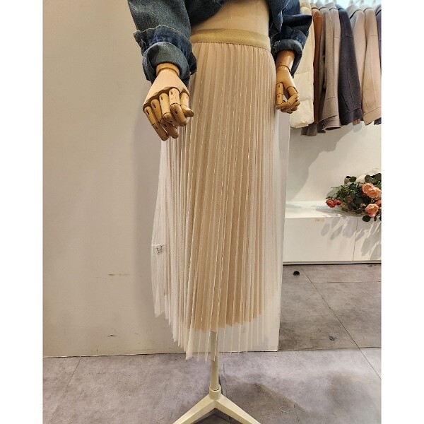 CP2WSK09_밴딩 플리츠 샤 스커트