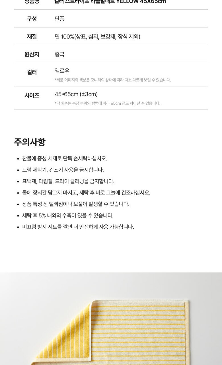 모던하우스 컬러 스트라이프 타월발매트 YELLOW 45X65cm BG2025013