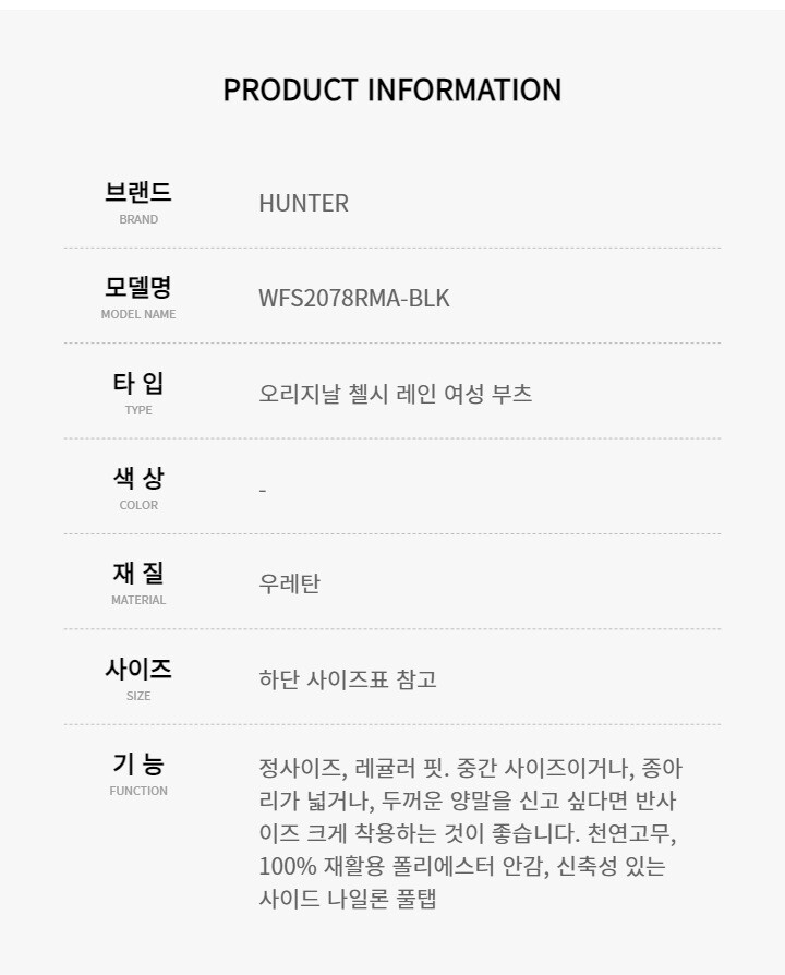헌터 WFS2078RMA-BLK 오리지날 첼시 레인 부츠