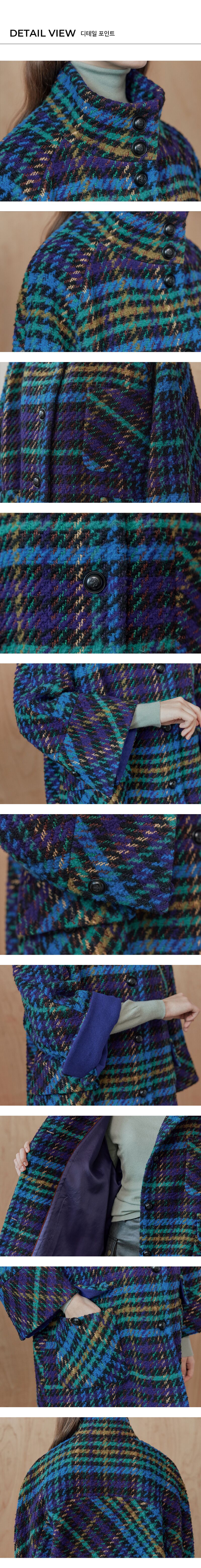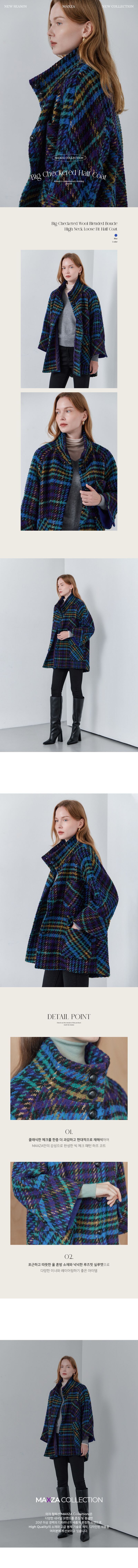 빅체크 울 부클 하이넥 루즈핏 하프 코트