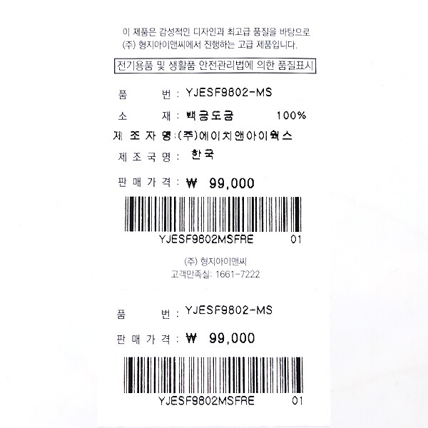 소재 : 백금도금100%