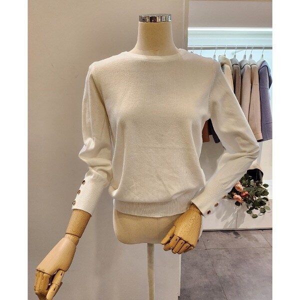 CP1WKT18_소매 쓰리버튼 라운드넥 니트