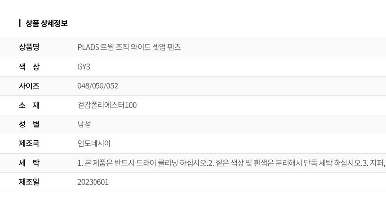 [T.I FORMEN] PLADS 트윌 조직 와이드 셋업 팬츠_M236CPT002M