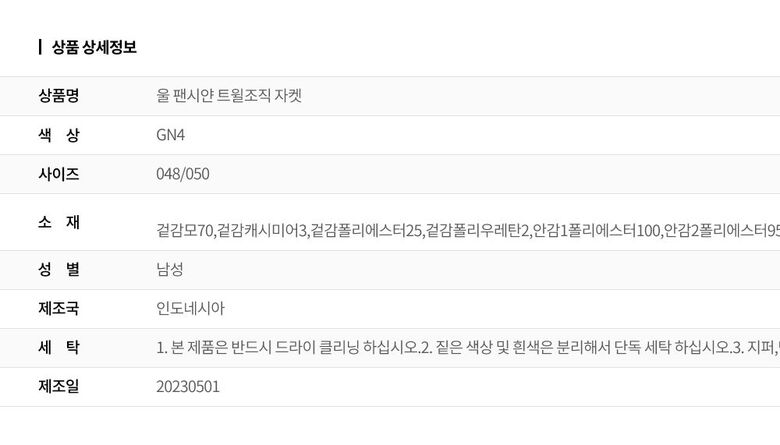 | 6. 세탁방법 및 취급시 주의사항 | 상세설명 참조 |