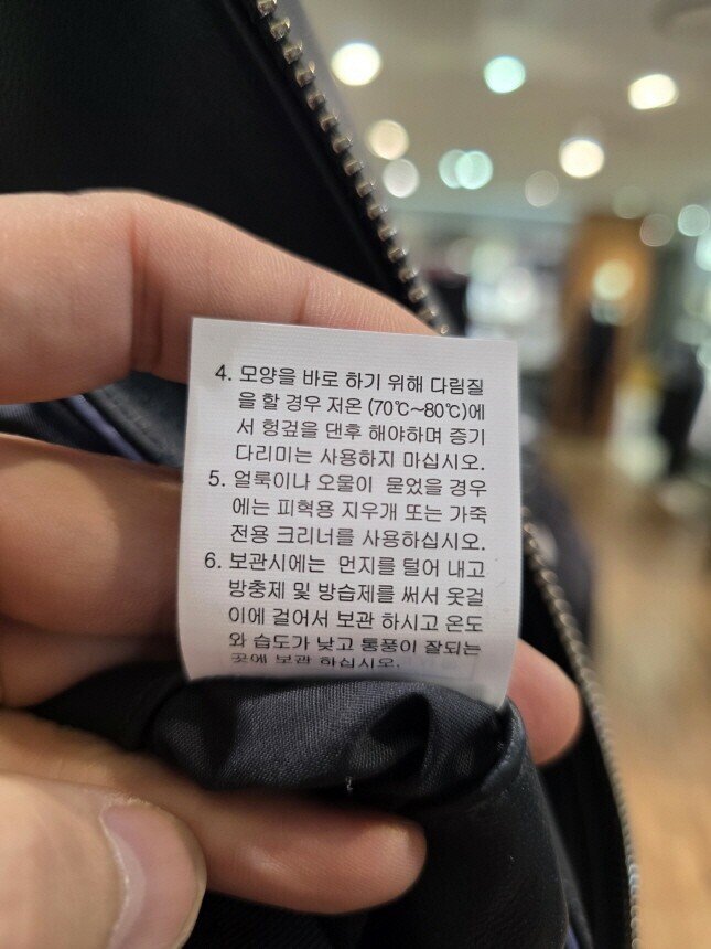 | 6. 세탁방법 및 취급시 주의사항 | 가죽 전문점에 의뢰하세요. |