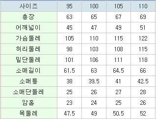 | 3. 치수 | 95,100,105,110 |