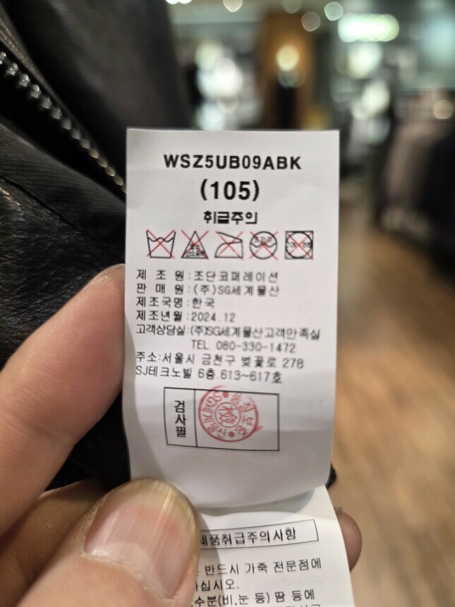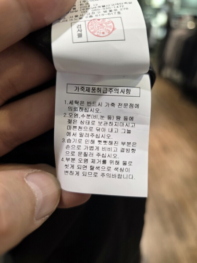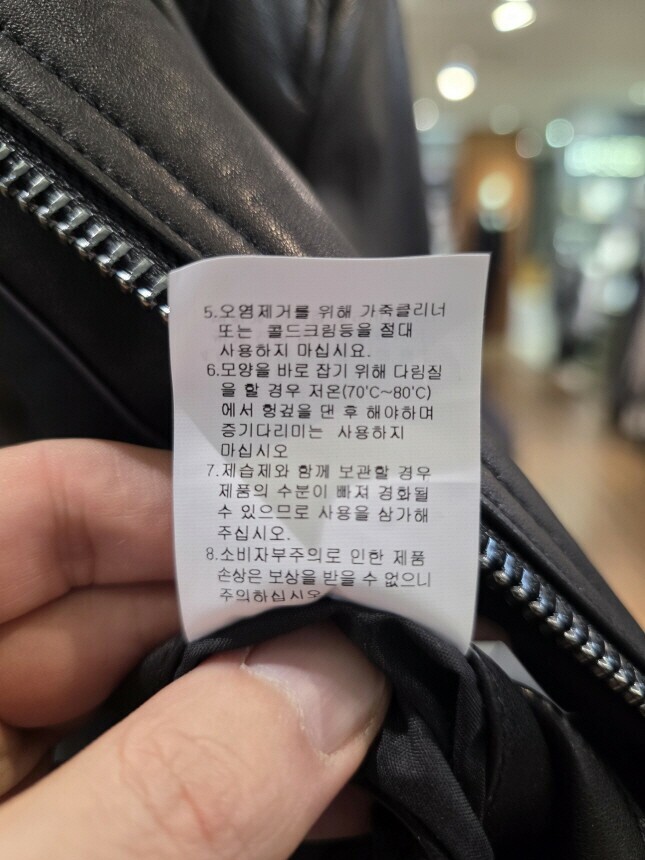 | 6. 세탁방법 및 취급시 주의사항 | 가죽 전문점에 의뢰하세요. |