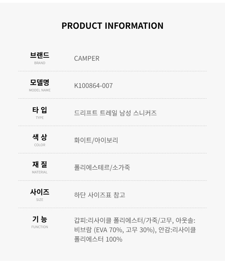 | 4. 제조사 | 캠퍼/MACHO-병행수입 |