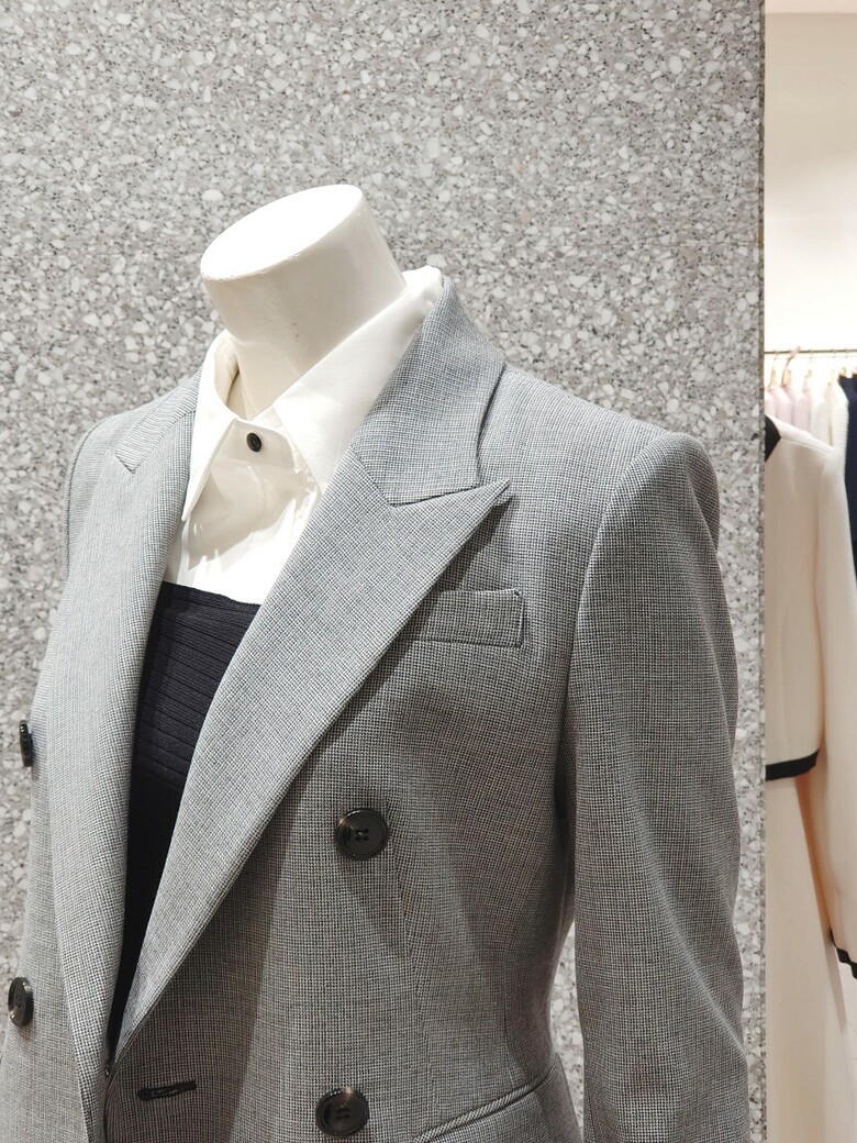 더블브레스트 디자인이 어우러져 단정한 무드를 선사합니다.