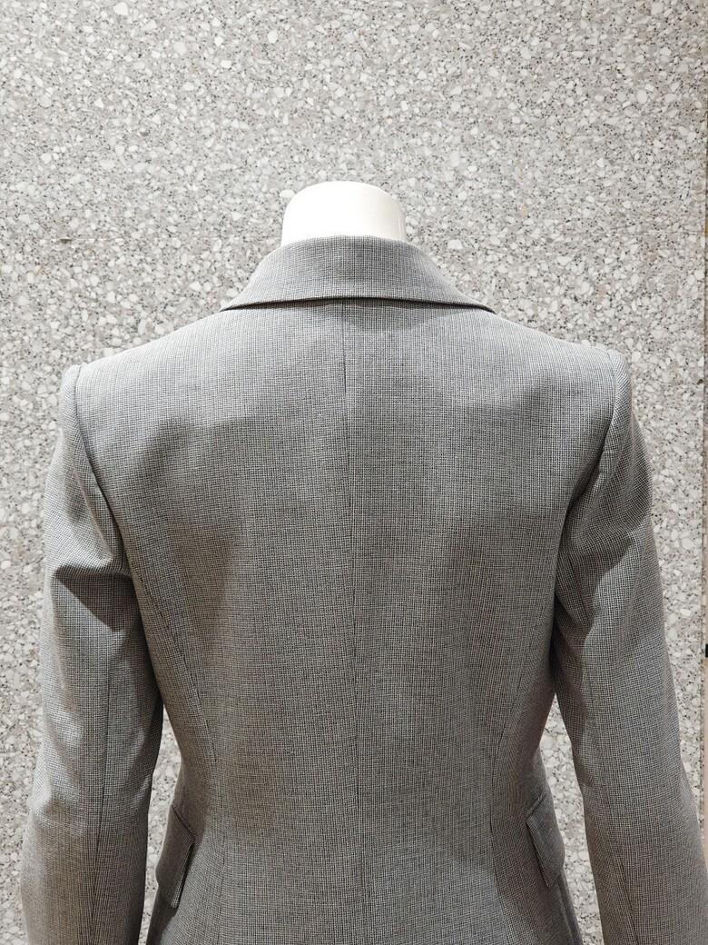 피크드 라펠 칼라로 포멀한 무드를 선사하는 재킷입니다.