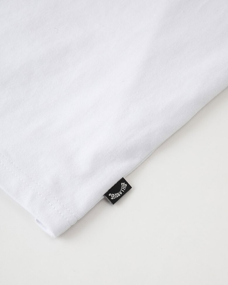 왼쪽 가슴과 등에 아트웍 프린트가 돋보이는 100% 면 소재 티셔츠입니다