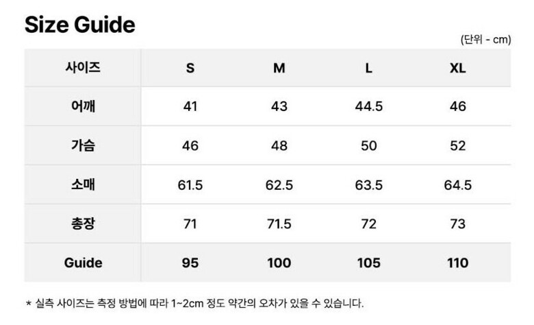 사이즈 : 95(S),100(M),105(L),110(XL)