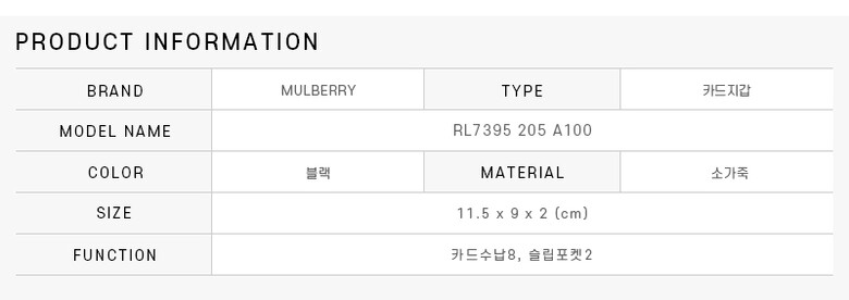 멀버리 카드지갑 RL7395 205 A100 로고 에이트 블랙 여성카드지갑 당일발송