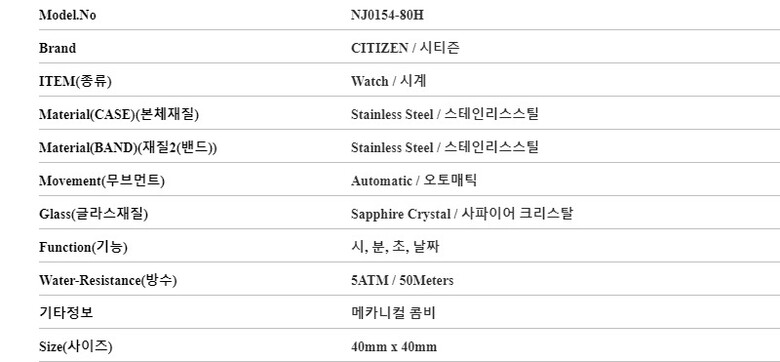 시티즌 시계 NJ0154-80H 메카니컬 콤비 남성메탈시계 당일발송