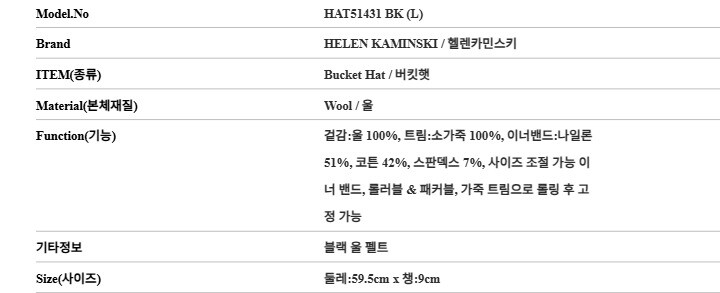 헬렌카민스키 모자 HAT51431 BK 알토 9 블랙 울 펠트 여성버킷햇 당일발송