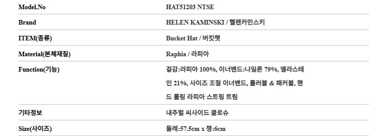헬렌카민스키 모자 HAT51203 NTSE 로지 내추럴 씨사이드 클로슈 여성버킷햇 당일발송