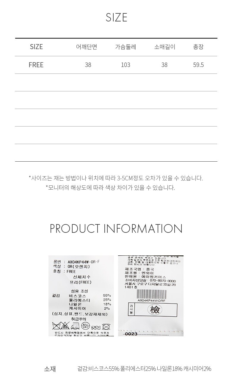 6. 세탁방법 및 취급시 주의사항 상세페이지및 라벨참조