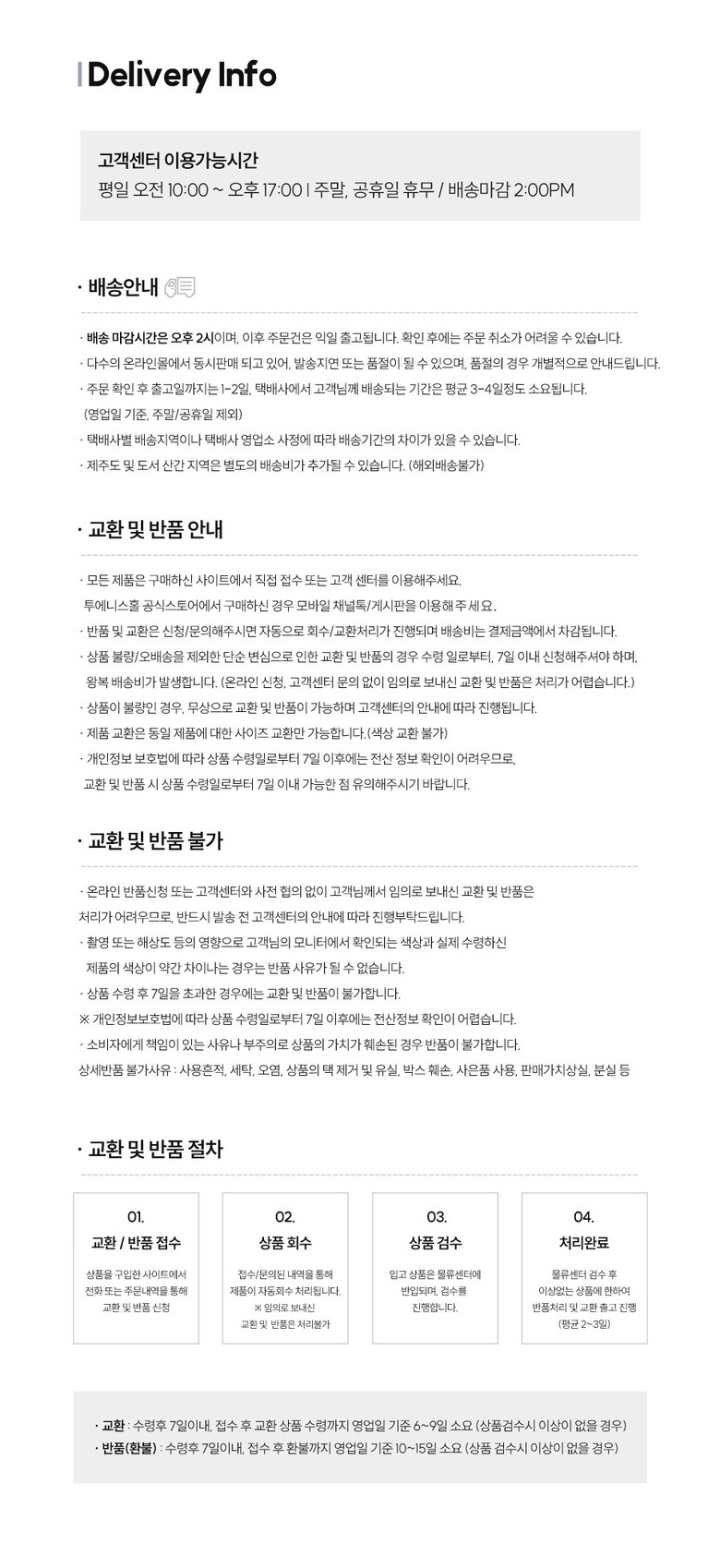 상품불량에 의한 반품, A/S, 품질보증 및 피해보상 등에 관한 사항은 소비자 분쟁해결기준(공정거래위원회 고시) 구매자가 미성년자인 경우에는 상품 구입시 법정대리인이 동의하지 아니하면 미성년자 본인 또는 법정대리인이 구매취소 할 수 있습니다. |