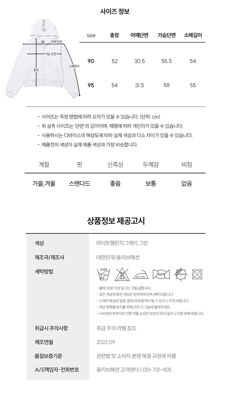 | 6. 세탁방법 및 취급시 주의사항 | 케어라벨 참조 |