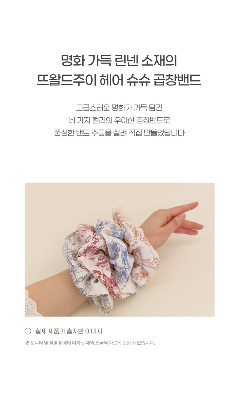 포홈 핸드메이드 뜨왈 드 주이 린넨 헤어 곱창 머리끈 내맘대로 2개 골라담아
