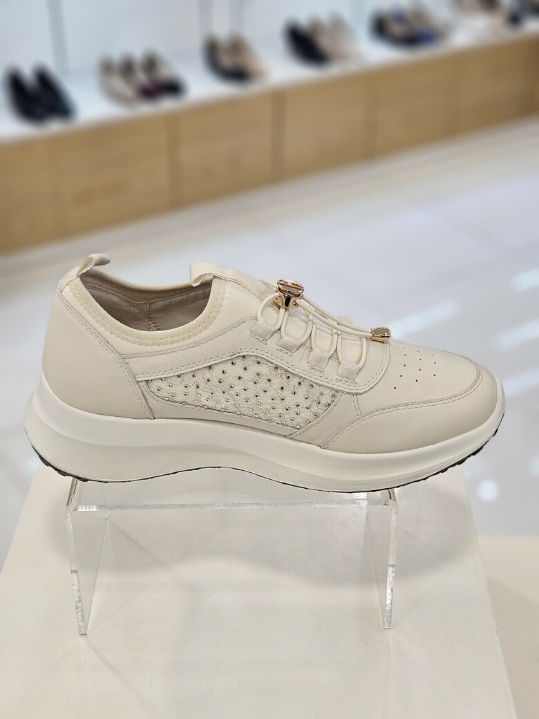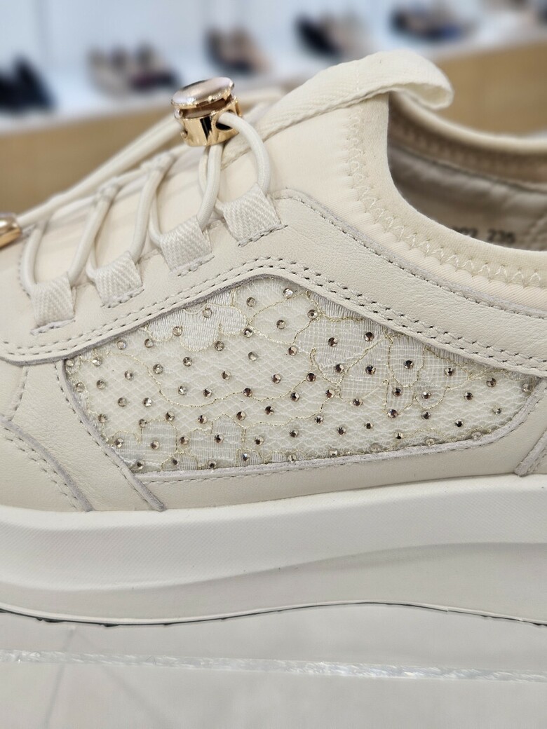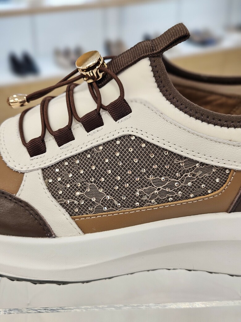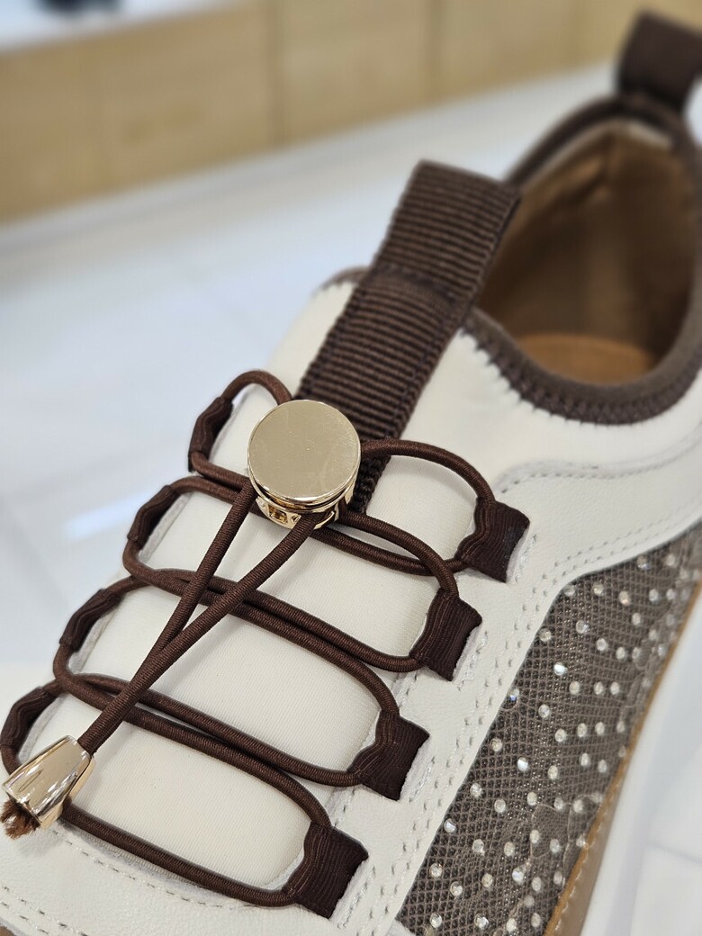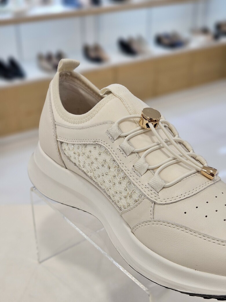 촘촘한 보석장식이 포인트로 들어가 고급스러운 무드가 나는 여성 스니커즈