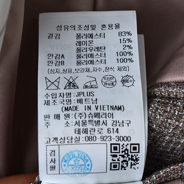 제품소재 : 폴리에스터83%레이온15%폴리우레탄2%