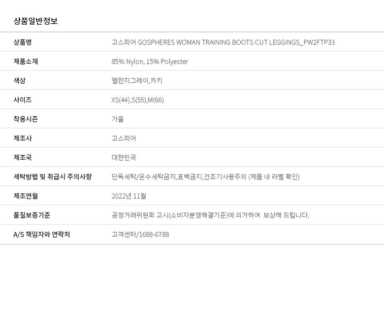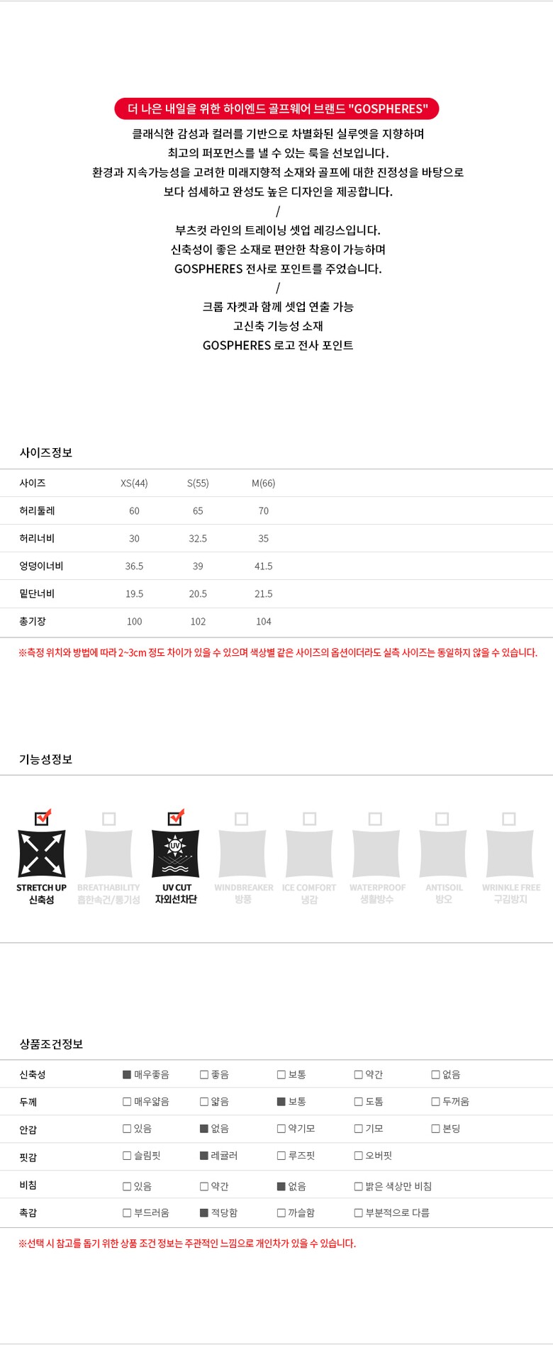 3. 치수 XS(44),S(55),M(66)