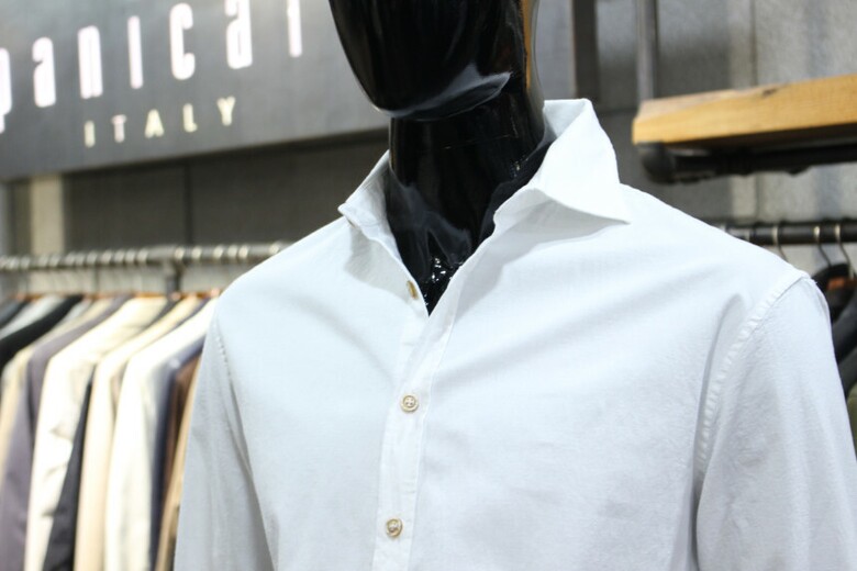 깔끔한 화이트컬러의 와이드카라셔츠입니다