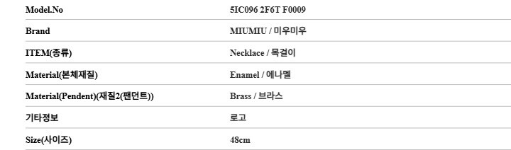 미우미우 5IC096 2F6T F0009 로고 에나멜 목걸이