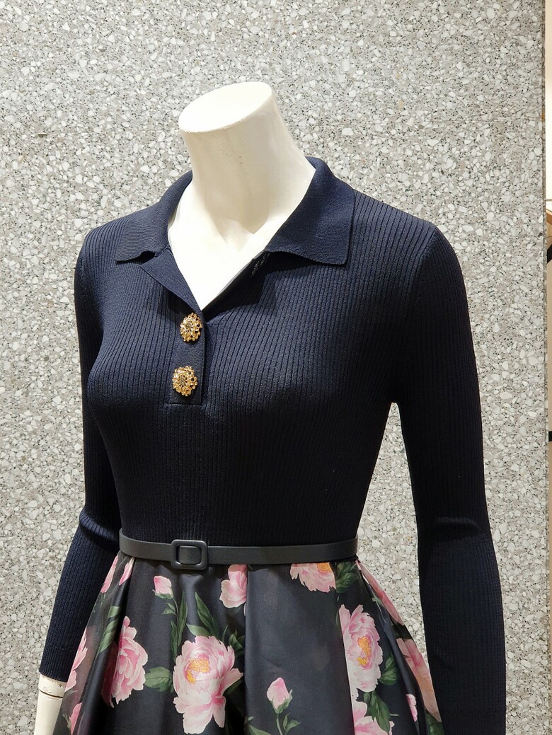 _판매종료니트 패치 플라워 스커트 원피스 JR3-A1-OP852