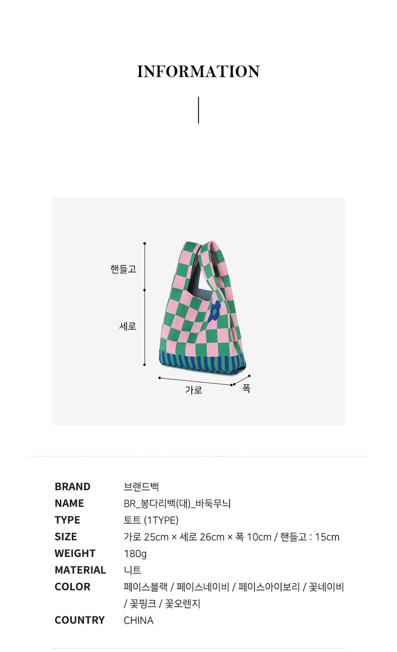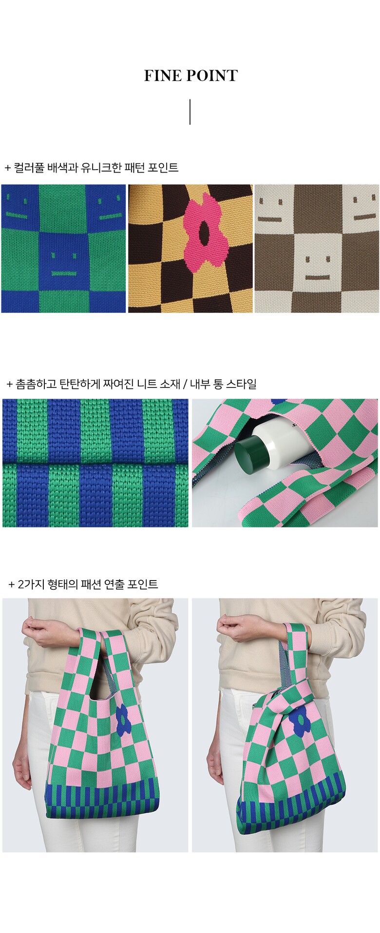 레네 여성 직장인 대학생 체크 니트 토트백 가방 L92534